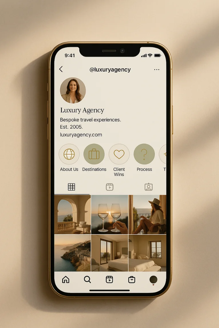 Luxury travel is deeply visual and emotional. Your social media presence isn’t just marketing—it’s your brand’s first impression. For agencies and larger teams, your Instagram grid, LinkedIn page, and even your Pinterest boards aren’t just content—they’re credibility checks.
